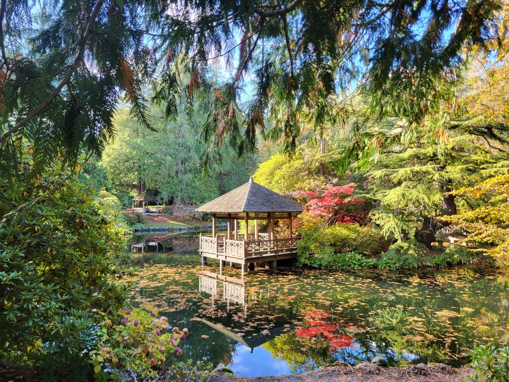 At least once a day you will find me either running or walking among the centuries old Douglas Fir Trees in Royal Roads University, which sits within the grounds and gardens of the Hatley Park National Historic site. This particular photo of the Japanese Garden was taken on a mid-afternoon walk in early fall. Rather than reflecting any photographic talent, the beauty captured here was more simply a case of right place, right time, and maybe even the right smart phone camera : )