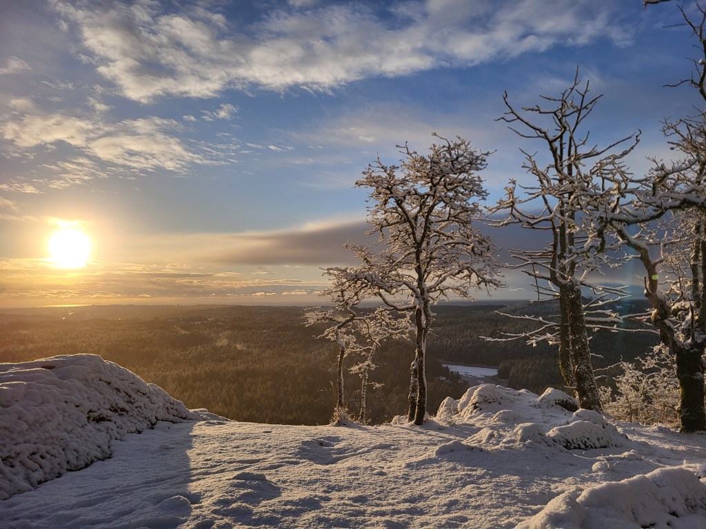 One of my favourite training runs is the 7 peaks run, which includes sections in the Thetis Lake, Mount Work, Gowlland Todd and Goldstream Regional parks. This shot was taken at the top of Scafe Hill, where the views are always a just reward for the steep climb up. A rare snow day in early February made the vista just that extra bit special.